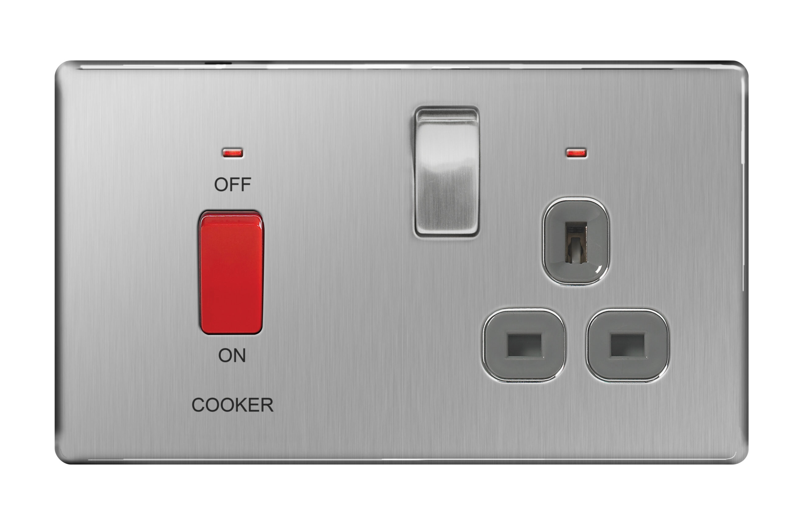 BG NEXUS FBS70G 45 AMP D/POLE COOKER PANEL SCREWLESS FLATPLATE BRUSHED STEEL