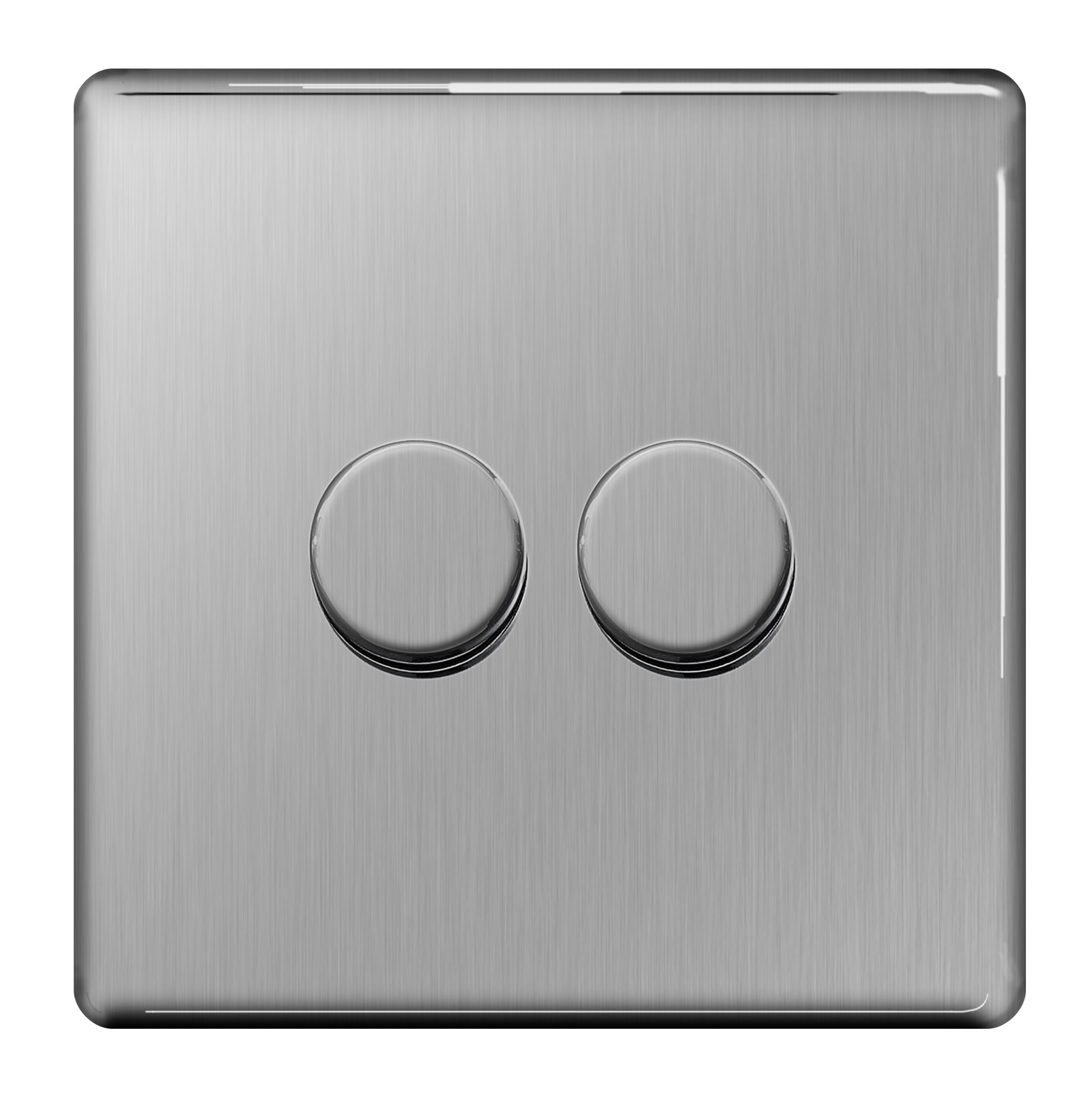 BG NEXUS FBS82 2 GANG 2 WAY LED DIMMER SWITCH SCREWLESS FLATPLATE BRUSHED STEEL