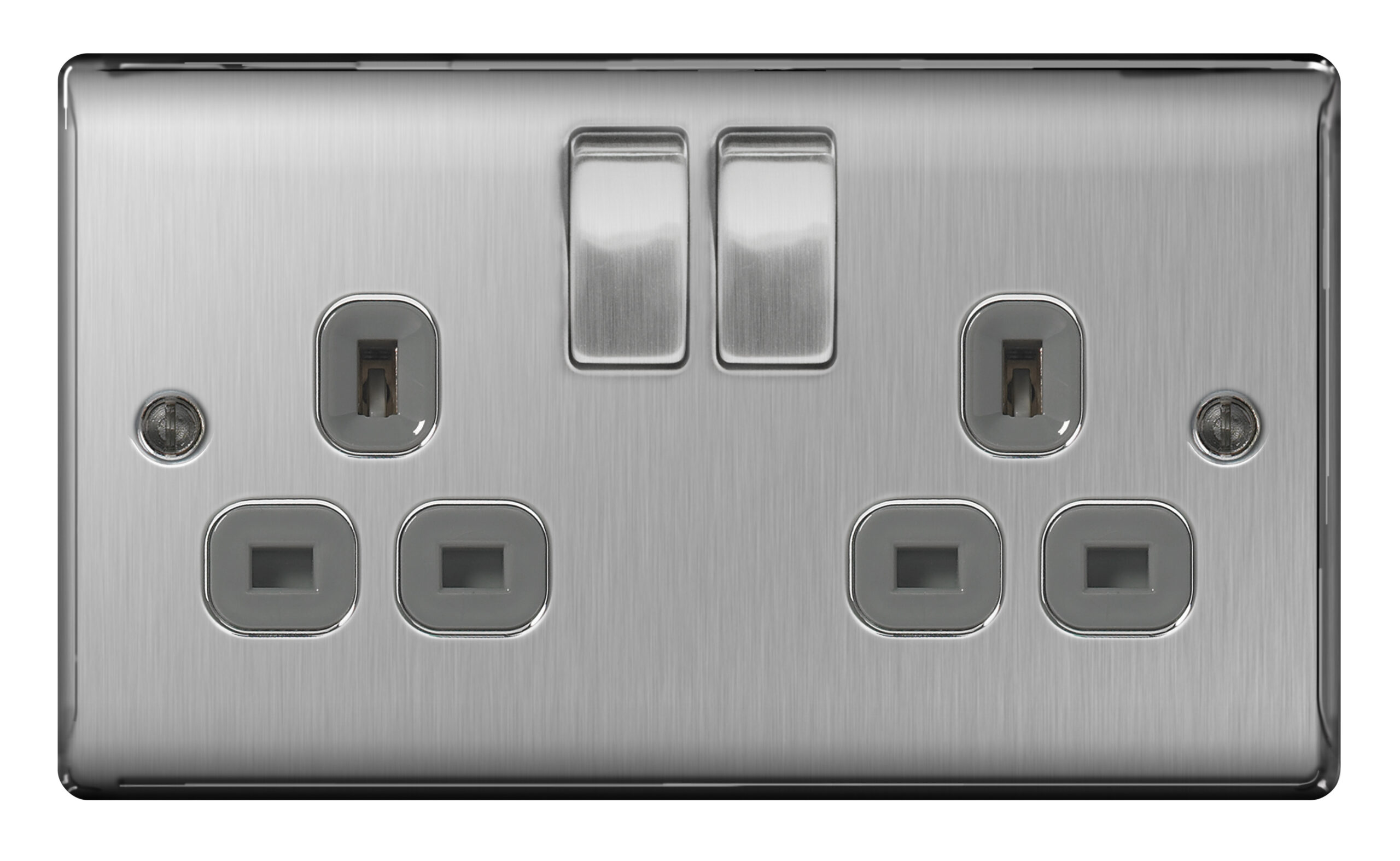 BG NEXUS NBS22G 2 GANG 13AMP SWITCHED SOCKET BRUSHED STEEL GREY INSERT