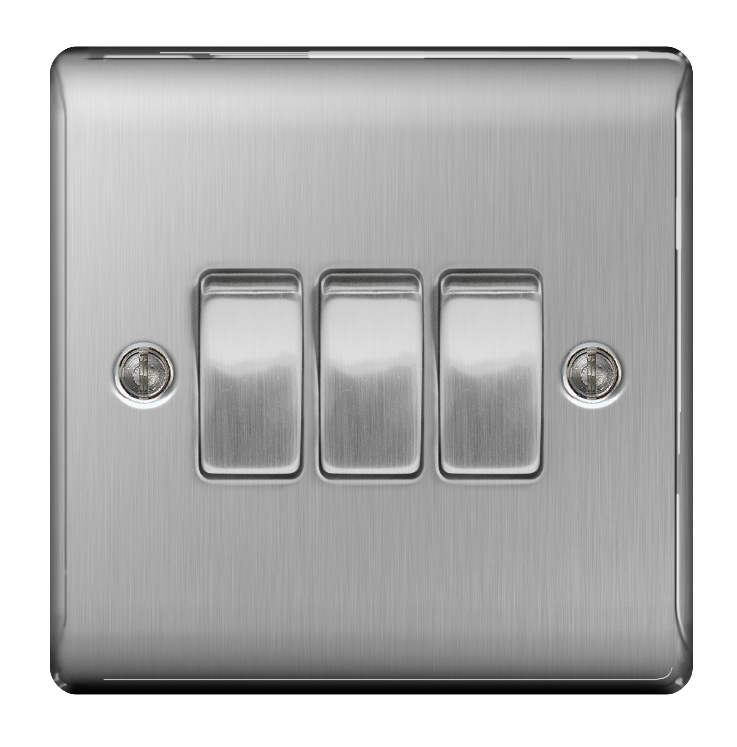 BG NEXUS NBS43 3 GANG 2 WAY SWITCH BRUSHED STEEL