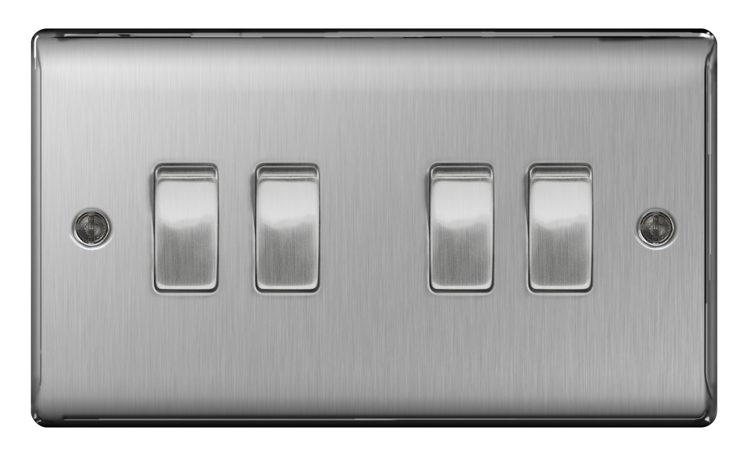 BG NEXUS NBS44 4 GANG 2 WAY SWITCH BRUSHED STEEL
