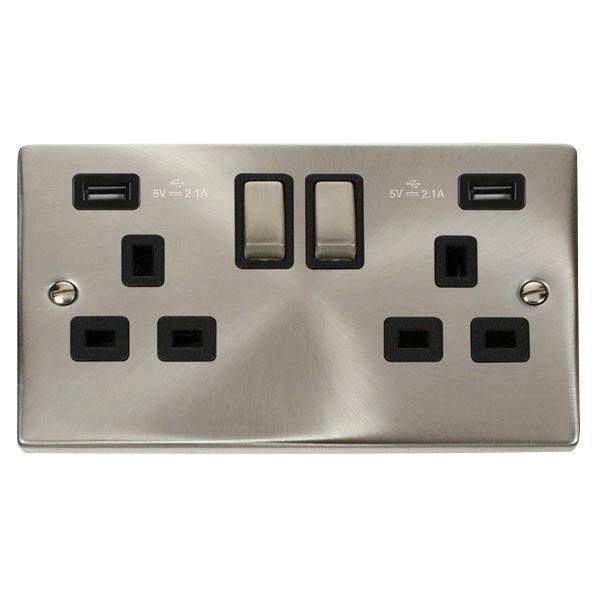 CLICK VPSC580BK DECO VP SATIN CHROME 2 GANG 13A USB 4.2A SWITCHED SOCKET