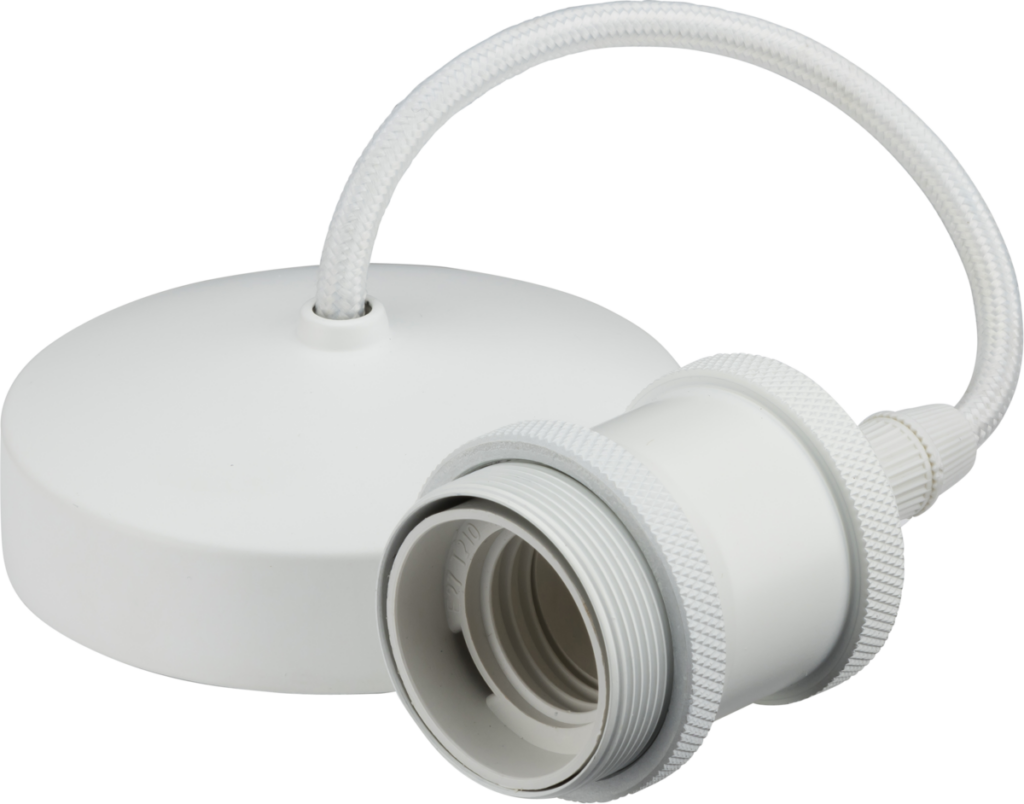 Contemporary style metal pendant lamp holder. Pre-wired to reduce time on installation