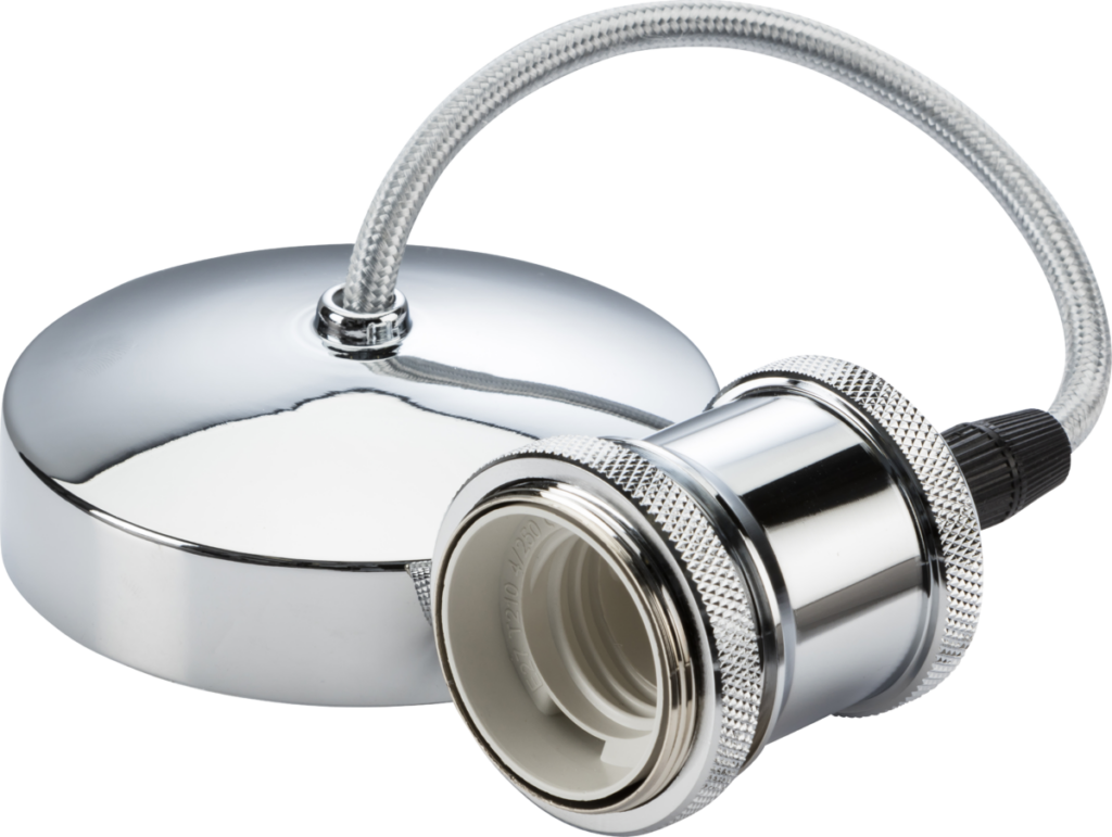 Contemporary style metal pendant lamp holder. Pre-wired to reduce time on installation