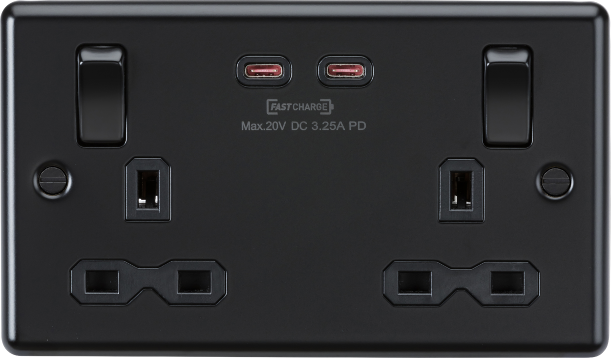 KNIGHTSBRIDGE CL9965MBB 13A 2 GANG SWITCHED SOCKET C/W 2 x USB-C ADAPTOR