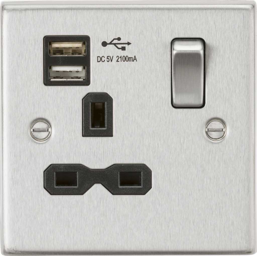 KNIGHTSBRIDGE CS91BC 13A 1 GANG SWITCHED SOCKET C/W DUAL USB ADAPTOR