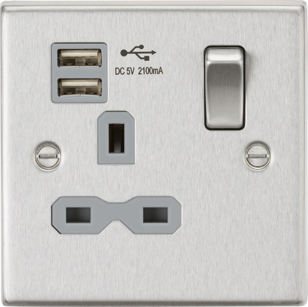 KNIGHTSBRIDGE CS91BCG 13A 1 GANG SWITCHED SOCKET C/W DUAL USB ADAPTOR