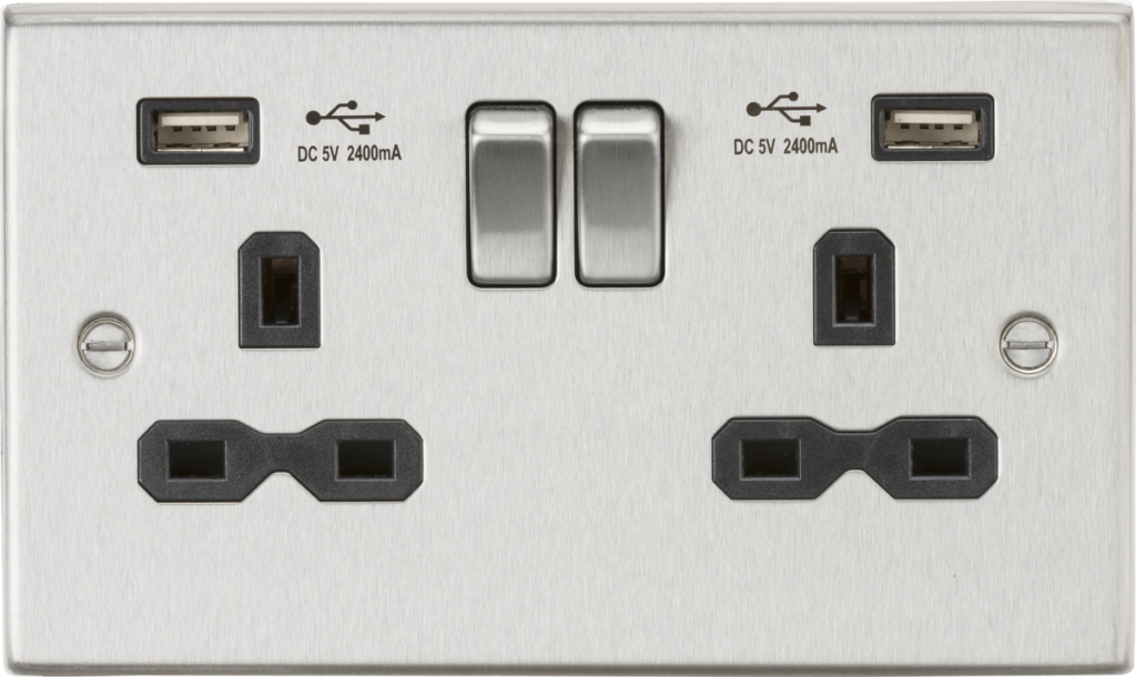KNIGHTSBRIDGE CS9224BC 13A 2 GANG SWITCHED SOCKET C/W DUAL USB ADAPTOR