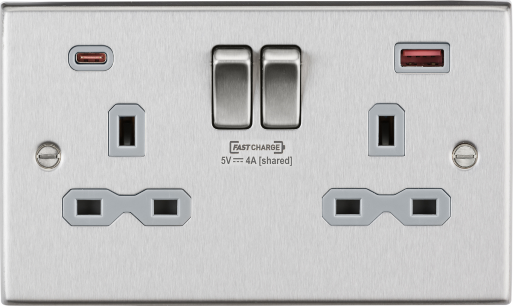 KNIGHTSBRIDGE CS9909BCG 13A 2 GANG DUAL USB SWITCHED SOCKET TYPE A & C FASTCHARGE
