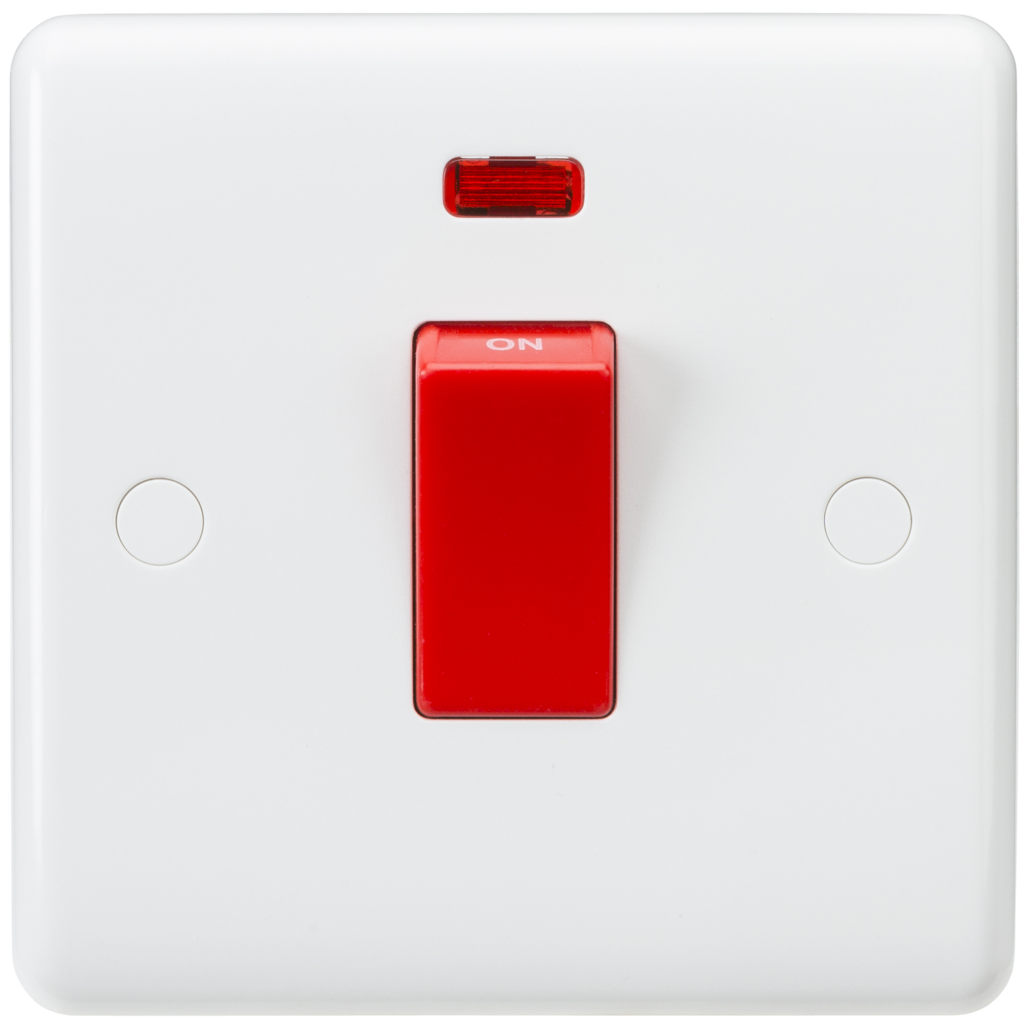 KNIGHTSBRIDGE CURVED CU8331N 45AMP DOUBLE POLE SWITCH WITH NEON (SINGLE SIZE)