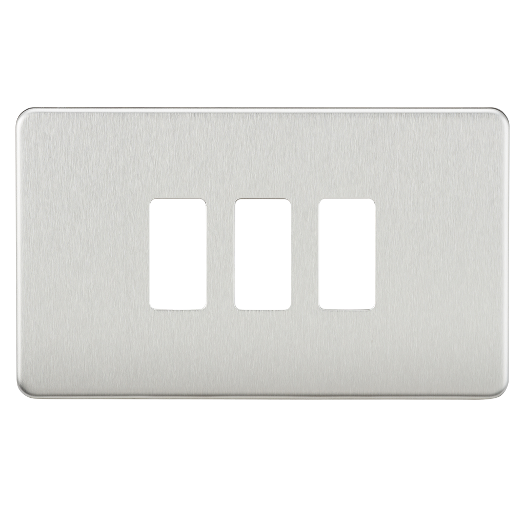 KNIGHTSBRIDGE GDSF003BC SCREWLESS 3 GANG GRID FACEPLATE BRUSHED CHROME