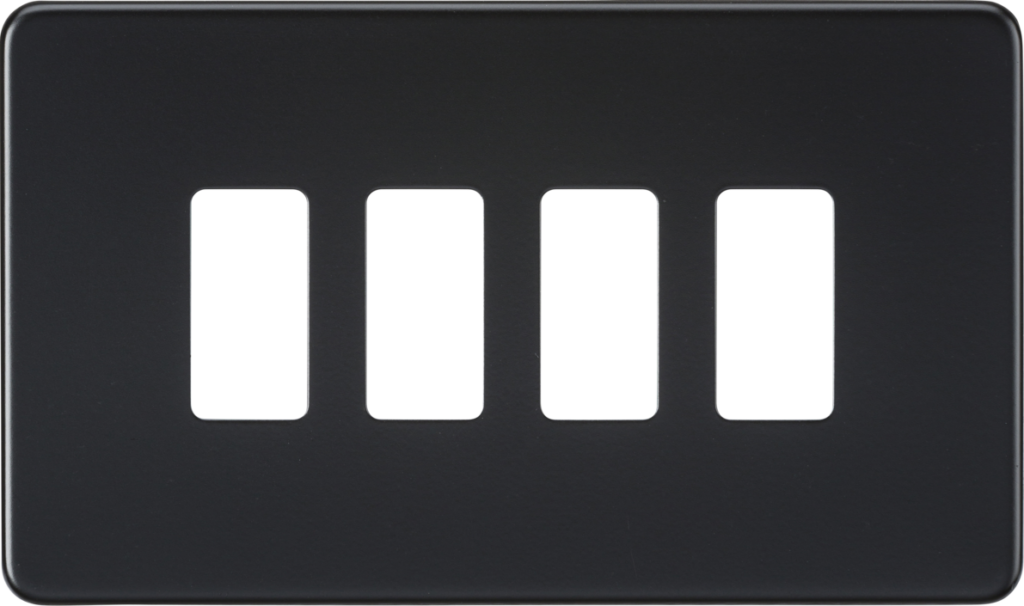 KNIGHTSBRIDGE GDSF004MB SCREWLESS 4 GANG GRID FACEPLATE MATT BLACK