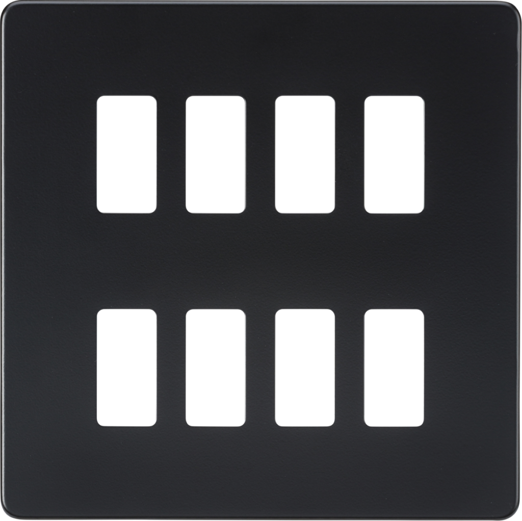 KNIGHTSBRIDGE GDSF008MB SCREWLESS 8 GANG GRID FACEPLATE MATT BLACK