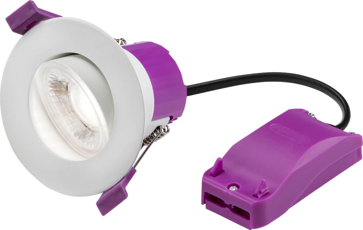 Push-fit terminals with loop-in/loop-out capabilities Selectable colour temperature 3000/4000/6500K Dimmable* Fire-rated – 30/60/90min solid timber, 30min web joist and 30/90min i-joist (Staircraft) IC rated Acoustic-rated 20 degree tilt angle Supplied with white trim Dimensions: Diameter 86mm Depth 62mm Cutout 55-70mm Interchangeable bezels available in Matt Black, Polished Chrome, Brushed Chrome and Brass 3-year warranty *For use with Trailing Edge dimmers – please check compatibility before installation.