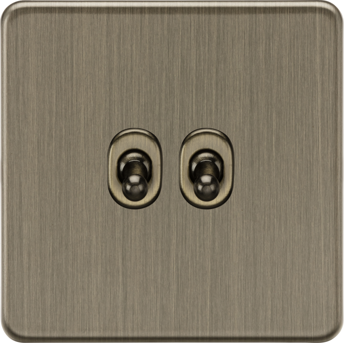 The Knightsbridge SF2TOGAB 2 Gang Toggle Plate Switch has a screwless ultra slim flat plate profile with just 4.3mm projection. An integral moisture gasket helps to protect the finish of the Screwless Antique Brass 10AX 2 Way 2 Gang Toggle Plate Switch from damage or tarnishing. The range is constructed from premium grade components, and many items (excluding USB sockets, dimmers, and others specified are backed up by a 25 year guarantee. Knightsbridge’s SF2TOGAB Screwless Antique Brass 10AX 2 Way 2 Gang Toggle Plate Switch is the perfect finishing touch to any modern or classic home. Two way light switches are used when a light can be controlled from two places – for example, a light can be controlled from both ends of a room. These light switches can also be wired for one way use instead. This light switch requires a minimum back box depth of 16mm.