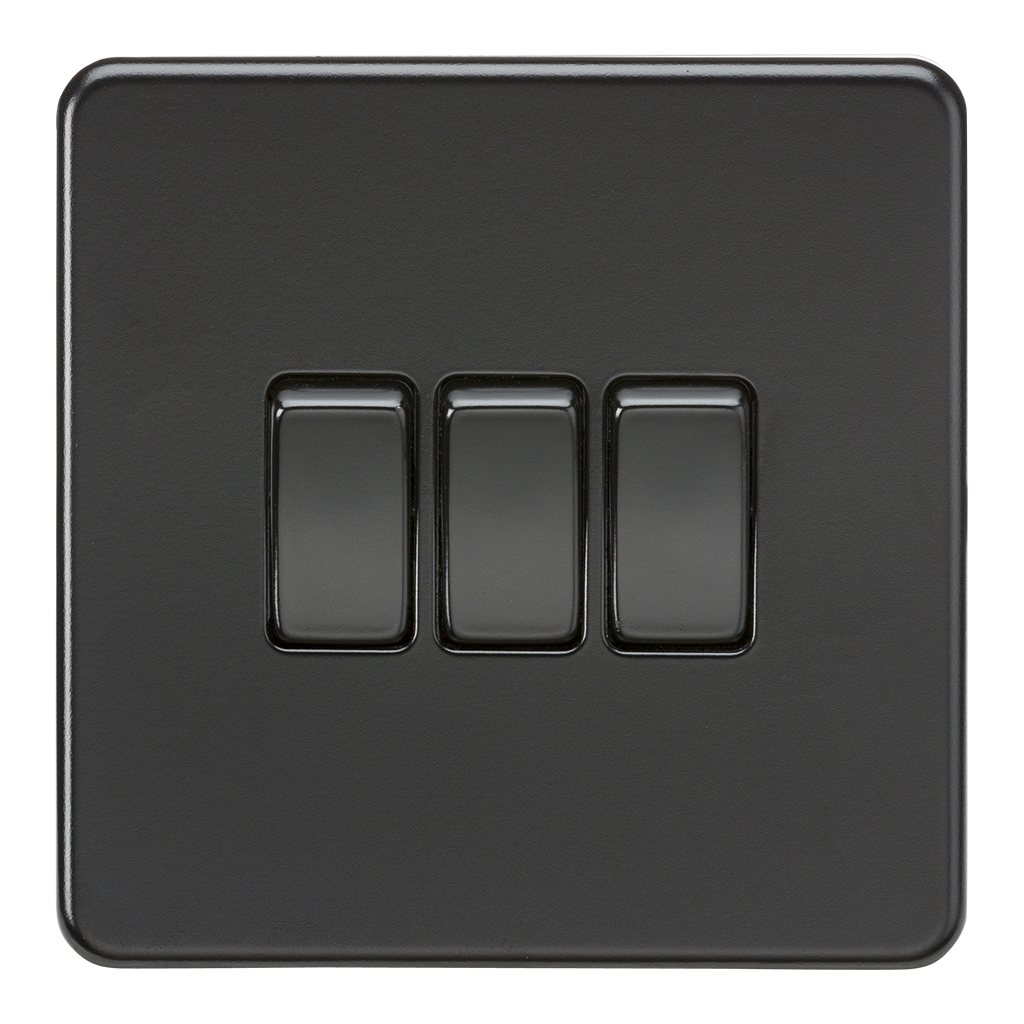 KNIGHTSBRIDGE SF4000MBB SCREWLESS FLATPLATE 3 GANG SWITCH
