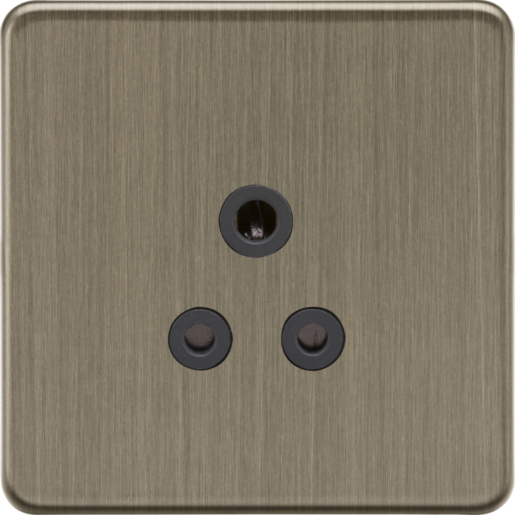 The Knightsbridge SF5AAB Unswitched Single Socket has a screwless ultra slim flat plate profile with just 4.3mm projection. An integral moisture gasket helps to protect the finish of the Screwless Antique Brass 5A Unswitched Single Socket from damage or tarnishing. The range is constructed from premium grade components, and many items (excluding USB sockets, dimmers, and others specified are backed up by a 25 year guarantee.