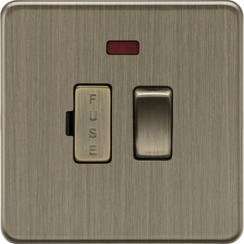 The Knightsbridge SF6000AB Fused Spur Unit has a screwless ultra slim flat plate profile with just 4.3mm projection. An integral moisture gasket helps to protect the finish of the Screwless Antique Brass 13A Fused Spur Unit from damage or tarnishing. The range is constructed from premium grade components, and many items (excluding USB sockets, dimmers, and others specified are backed up by a 25 year guarantee.