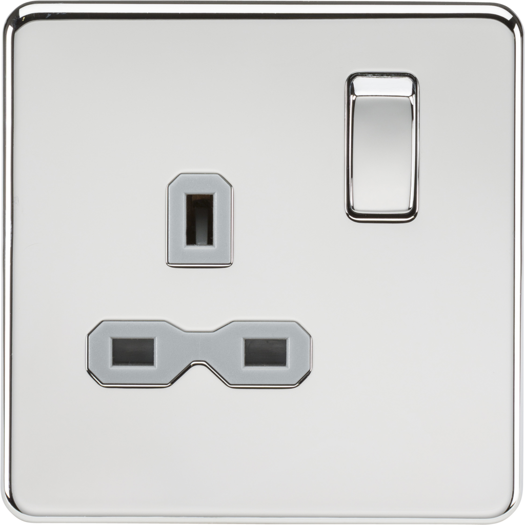 KNIGHTSBRIDGE SFR7000PCG SCREWLESS FLATPLATE 1 GANG SWITCHED SOCKET