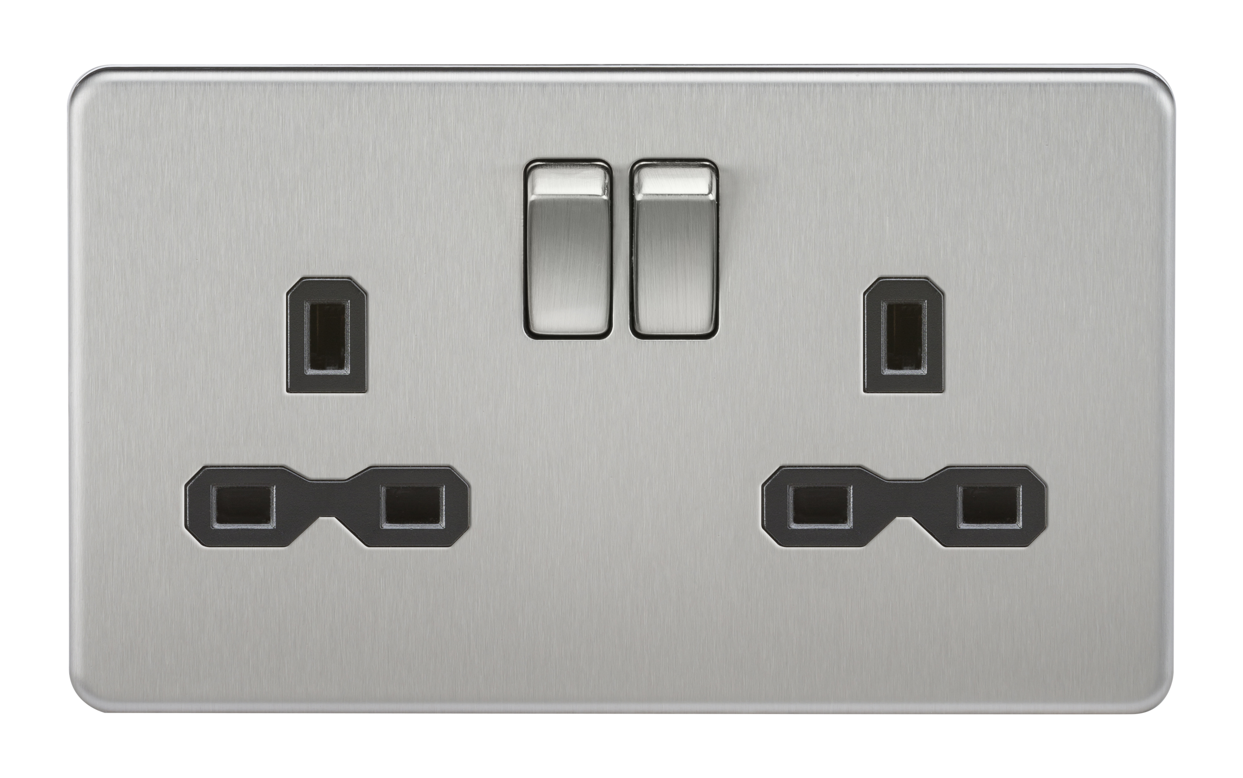 KNIGHTSBRIDGE SFR9000BC SCREWLESS FLATPLATE 2 GANG SWITCHED SOCKET