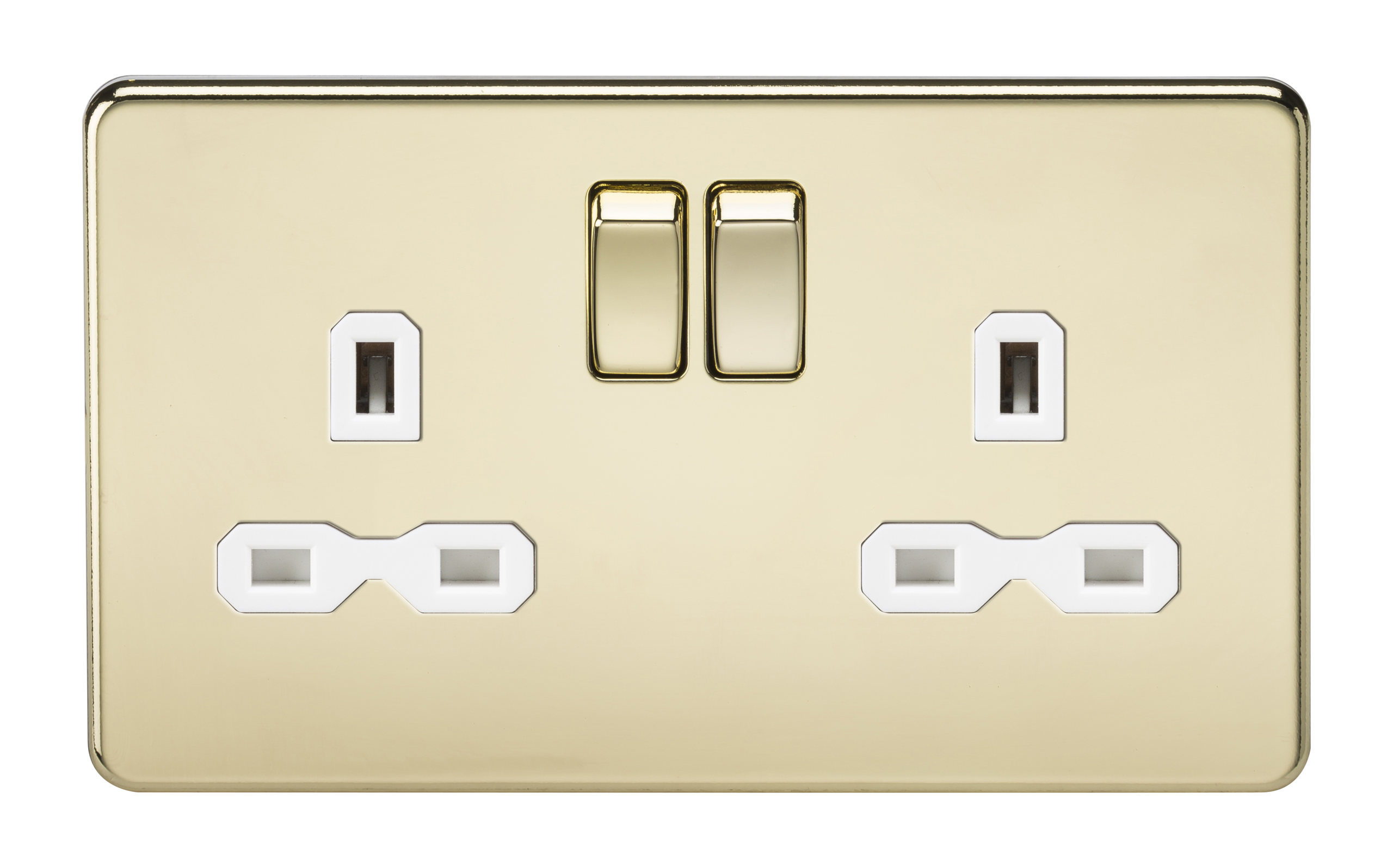 KNIGHTSBRIDGE SFR9000PBW SCREWLESS FLATPLATE 2 GANG SWITCHED SOCKET