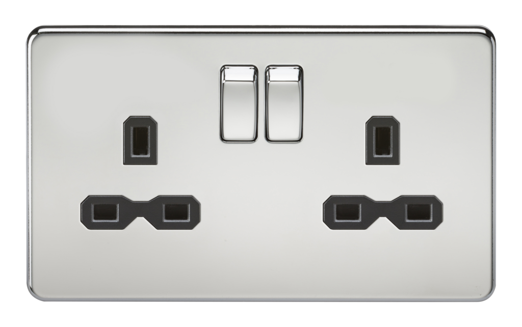 KNIGHTSBRIDGE SFR9000PC SCREWLESS FLATPLATE 2 GANG SWITCHED SOCKET
