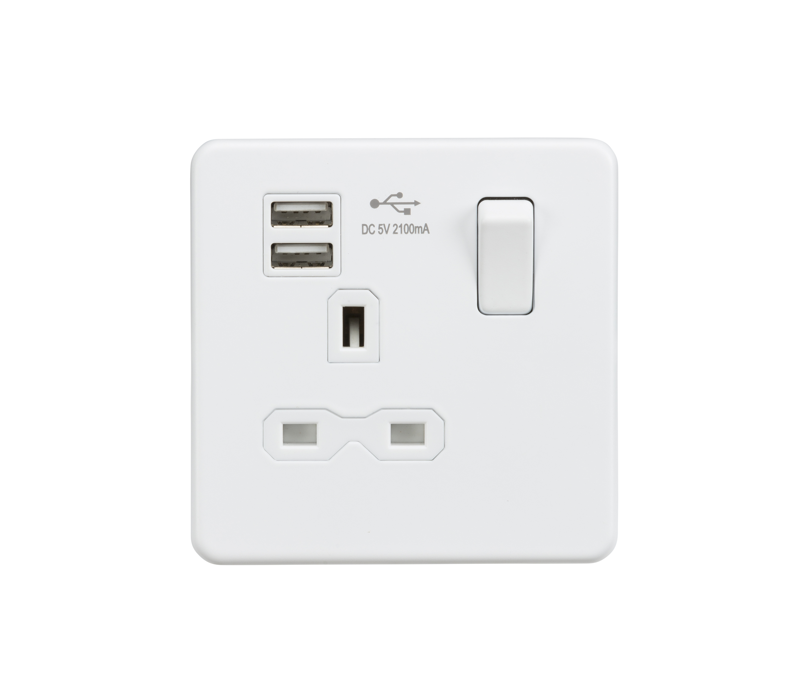 KNIGHTSBRIDGE SFR9124MW SCREWLESS FLATPLATE 1 GANG SWITCHED SOCKET C/W DUAL USB ADAPTOR