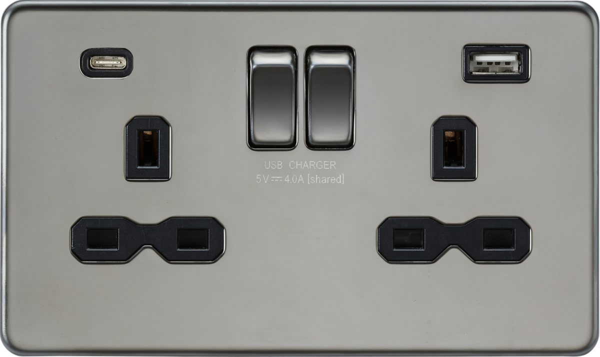 KNIGHTSBRIDGE SFR9940BN SCREWLESS 2 GANG SWITCHED SOCKET C/W A + C USB