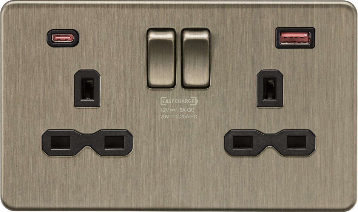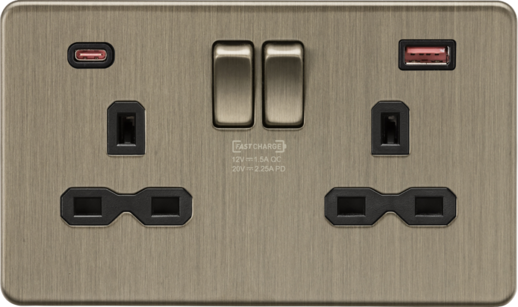 KNIGHTSBRIDGE SFR9945AB SCREWLESS 2 GANG SWITCHED SOCKET C/W A + C FASTCHARGE USB