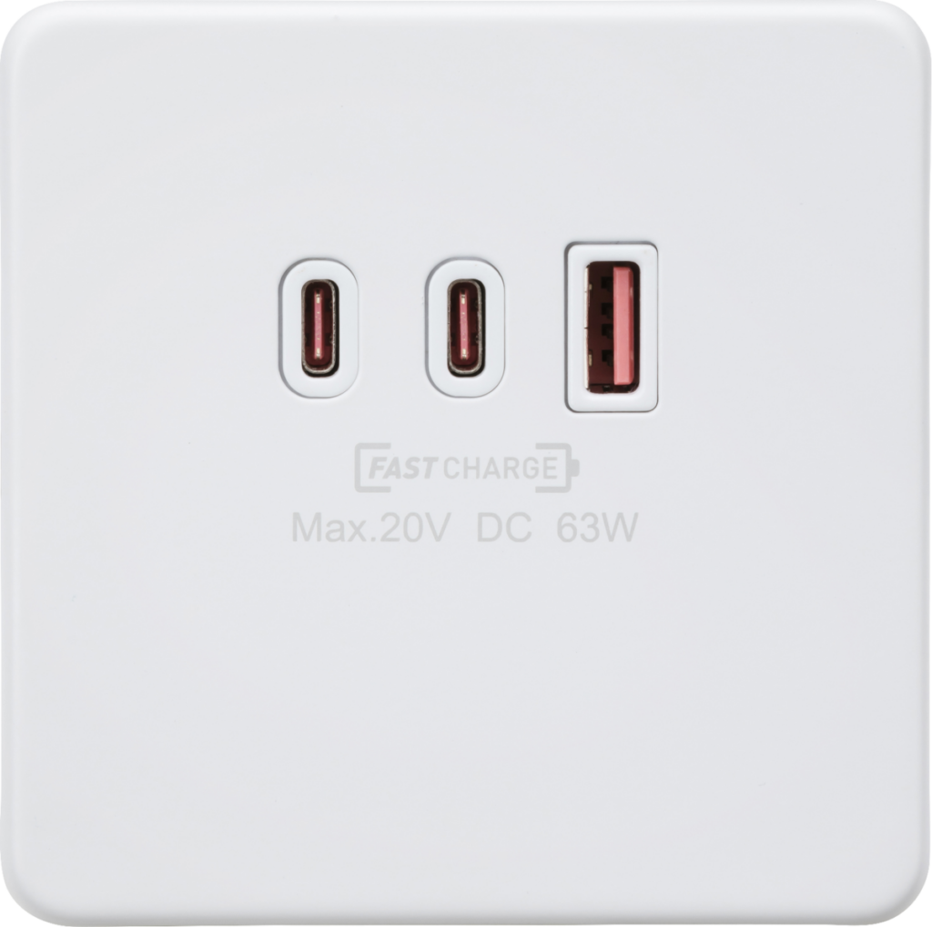 These metal decorative screwless USB charging sockets output at a Max. 65W over either of the USB-C port, they are ideal for locations where you might want a fast charge or to power a device like a laptop. They intelligently switch the voltage to give your device what it needs. Ideal for homes, offices, home offices, coffee shops, bars, restaurants, hospitality areas or anywhere a convenient power supply for charging and powering devices like laptops is needed. Supports USB-PD – a recognized standard for charging devices using a USB connection. To take advantage of this your device must support USB-PD. Also supported is the new PPS protocol that focuses on precise control of voltage and current during charging making it ideal for laptops
