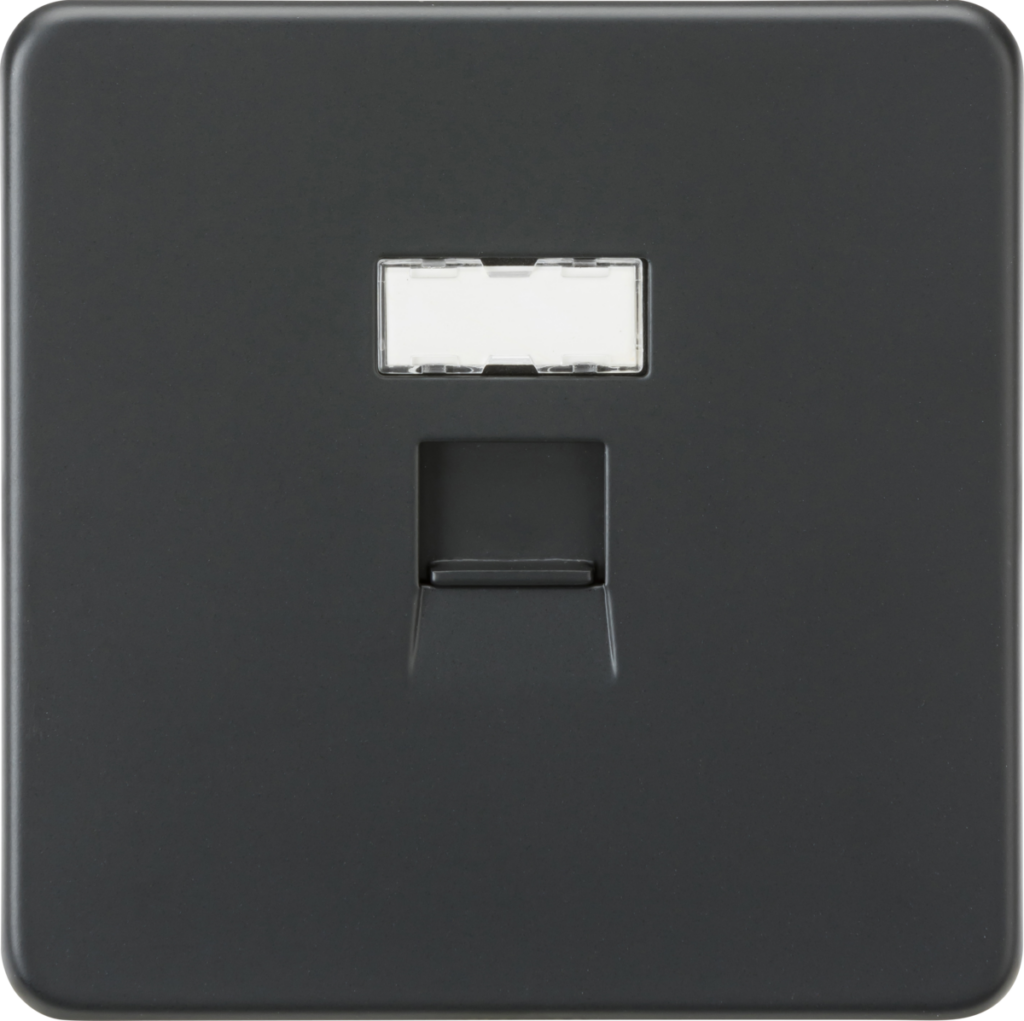 The ML Knightsbridge SFRJ45AT is a screwless anthracite RJ45 Cat5e network outlet. Suitable for the home, office, or anywhere needing wired networking points, the SFRJ45AT is a standard Ethernet port that adds sleek, modern style to its surroundings with its anthracite finish and low profile (less than 5mm thick). It is manufactured from premium grade steel to ensure a long-lasting quality product. The SFRJ45AT comes with IDC terminals for an easy, secure installation (tool included) and a write-on designation label for ease of use. Readily installable into any standard mounting box with 35mm minimum depth, the SFRJ45AT also comes fitted with a built-in gasket to prevent moisture transfer from tarnishing the finish. For peace of mind, the SFRJ45AT comes with a 15-year manufacturer warranty. It is constructed to BS 5733 to comply with national building standards.